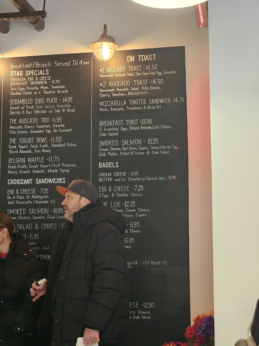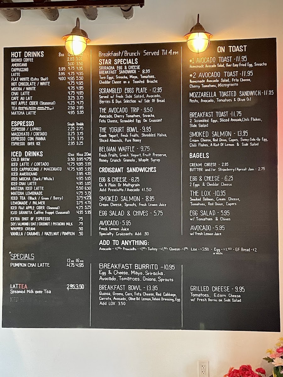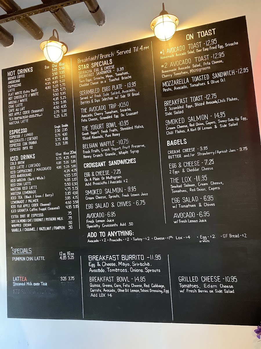 Black Star's menu shines with a variety of baked goods, including their popular Bagels. You'll want to try their The Lox Bagel ($13.95) for a taste explosion featuring smoked salmon, cream cheese, tomatoes, red onions, and capers, or for a classic option, go for the Egg and Cheese Bagel ($7.50) – simple, satisfying, and done just right. For those craving something crispy, don’t miss their Ham and Cheese Croissant ($8.50) or Turkey Pesto Croissant ($9.25), both filled with rich flavors that will make every bite feel like a special occasion.